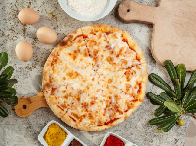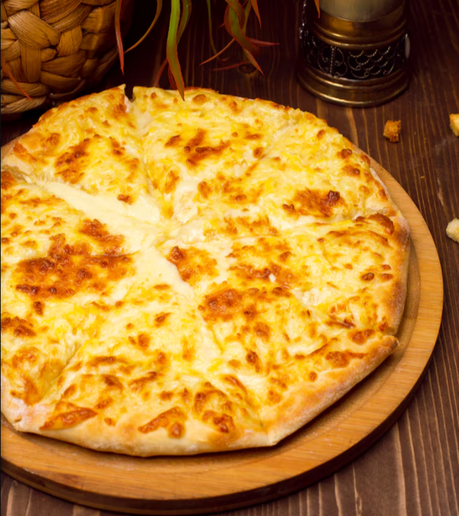 Sauce tomate, mozzarella, crème fraîche, bleu, chèvre, emmental, parmesan, cheddar, reblochon