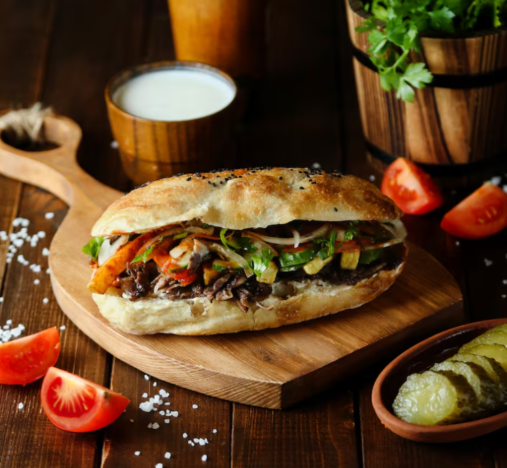 Crème fraîche, mozzarella, poulet, viande hachée, champignons, œuf, cheddar, sauce andalouse