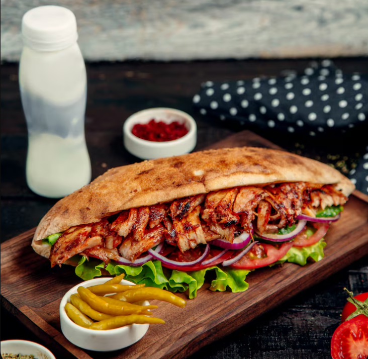 Crème fraîche, mozzarella, oignons, kebab, cheddar, sauce kebab